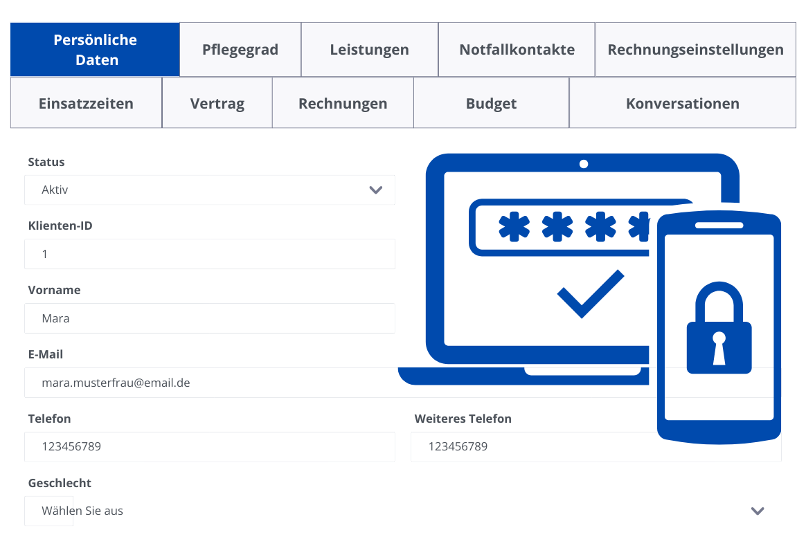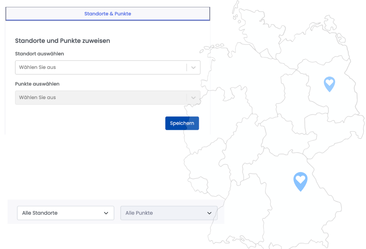 Erstelle deine Standorte mit allen relevanten Punkten, ordne Klienten und Mitarbeiter direkt zu und behalte jederzeit den Überblick. So siehst du alle Informationen standortbezogen oder standortübergreifend – ganz so, wie du es brauchst.